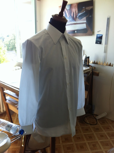Les faux-cols et / ou manchettes, le principe est le même, mais l’occasion m'est donnée de présenter ici, les manchettes, ceci du à un illustre client de Mary qui se reconnaitra et qui a bien voulu tenter l'aventure.